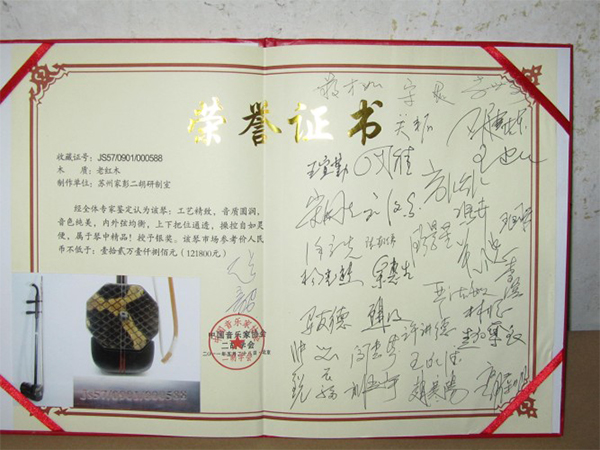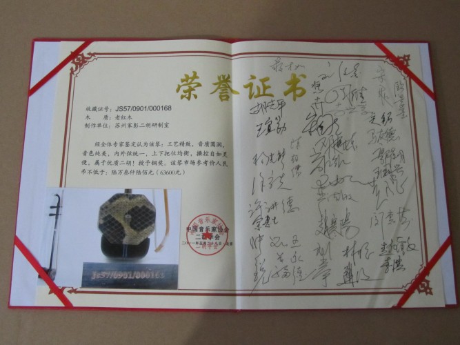 二胡制作大師丁家彭先生1949年出生樂器世家,17歲隨其祖父學(xué)琴藝,并深得精髓,其聰穎好學(xué),悉心鉆研與 探求二胡制作,博得同行的欽佩贊許,更得了許多知名演奏家的稱贊,充分認(rèn)識(shí)到二胡制作每個(gè)環(huán)節(jié),都對(duì)二胡制作都有影響力,因此對(duì)二胡的選材,選料,蟒皮都十分嚴(yán)格,二胡整體穩(wěn)定性良好,環(huán)境干擾影響極小。
